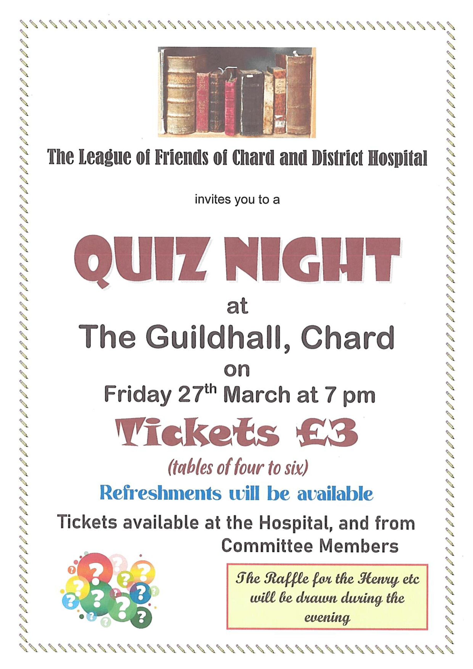 The League of Friends of Chard and District Hospital invites you to join them for a Quiz Night